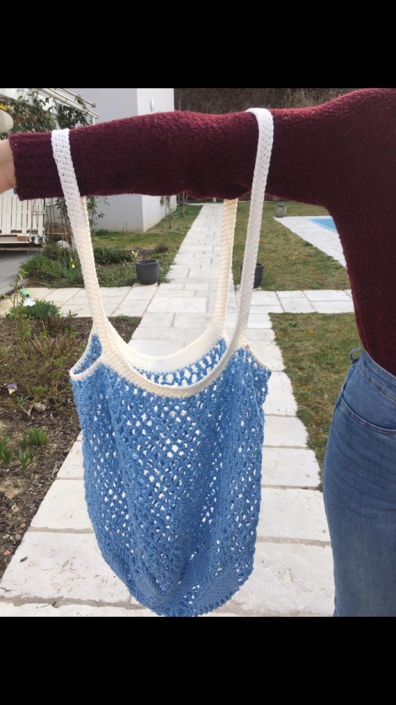 Einkaufstasche aus Netzmuster als Alternative zu Plastik aus Baumwollgarn